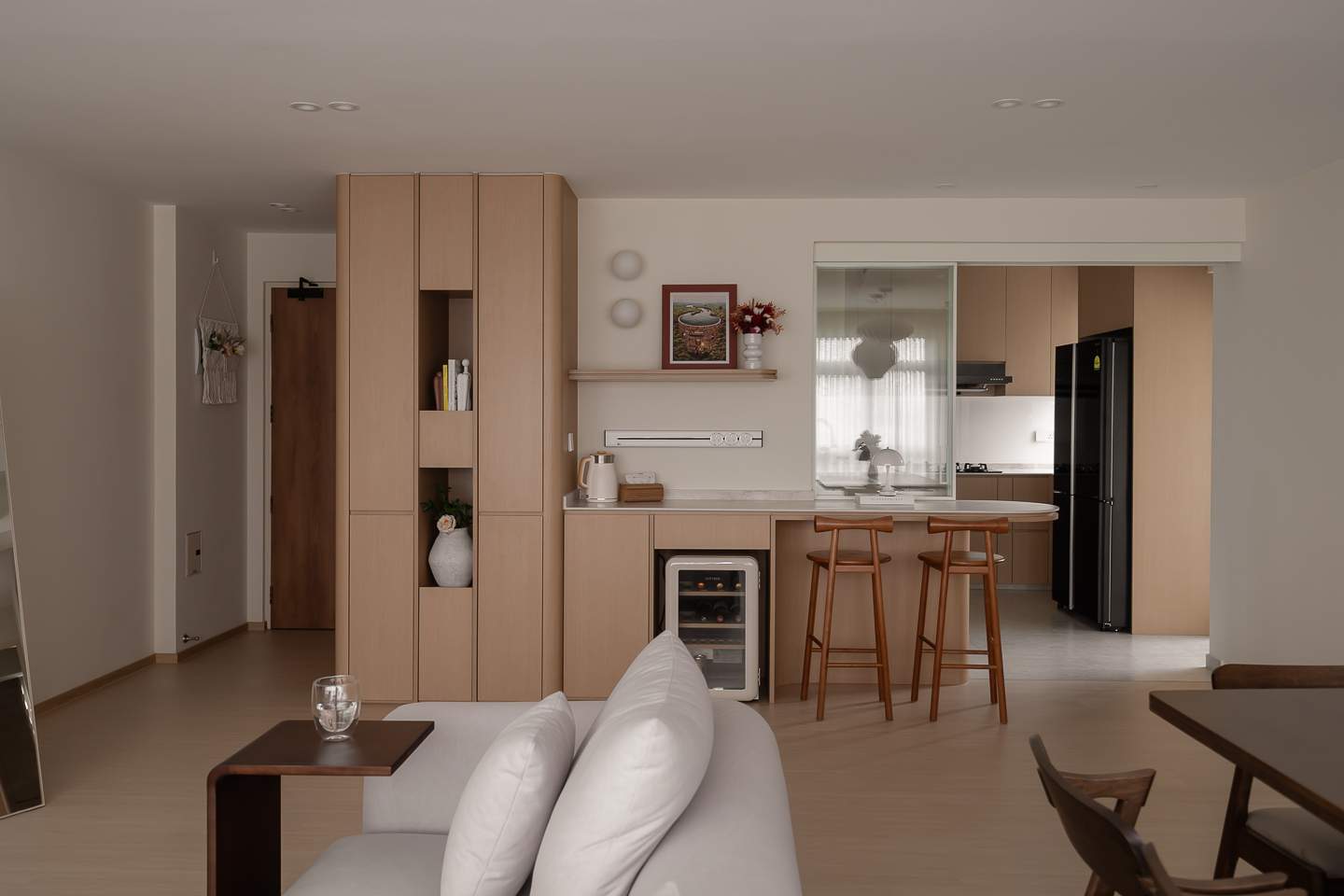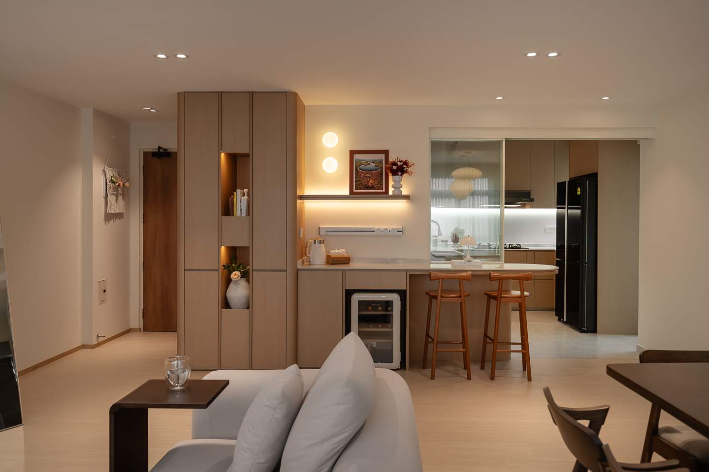 We chose Alex for his attention to detail, and he delivered from the first meeting. He was upfront about what was and wasn’t feasible, set clear expectations, and always took time to sit with us to brainstorm. Those sessions never felt rushed, he listened, refined our ideas, and consistently came back with inventive solutions that fit our home. Importantly, there was zero pressure to use his preferred vendors; he was transparent about options and fully supportive of our choices. Working with him has been smooth. Alex is very responsive, flexible when plans need to shift, and quick to address questions or concerns. He kept us aligned with regular check-ins at each milestone, so we always knew what was happening next and why. He also found smart, space-saving ways to meet our needs. Our tiny kitchen now functions beautifully - including the spice rack I really wanted. In the master, even with a king bed, he carved out a vanity by the window that feels purposeful rather than squeezed in. He also designed a beauty dry-pantry in the living room that uses space efficiently and keeps daily items tidy. When changes or rectifications were needed, Alex acted fast, arranged the right people, and followed through until things were settled. Service was excellent, he stayed on the ball throughout, and workmanship is solid; anything that needed a tweak was quickly rectified. What stood out most is his flexibility and meticulous care. He genuinely partnered with us in how we wanted to put the house together, even helping with furniture shopping and recommending some great Taobao finds.
